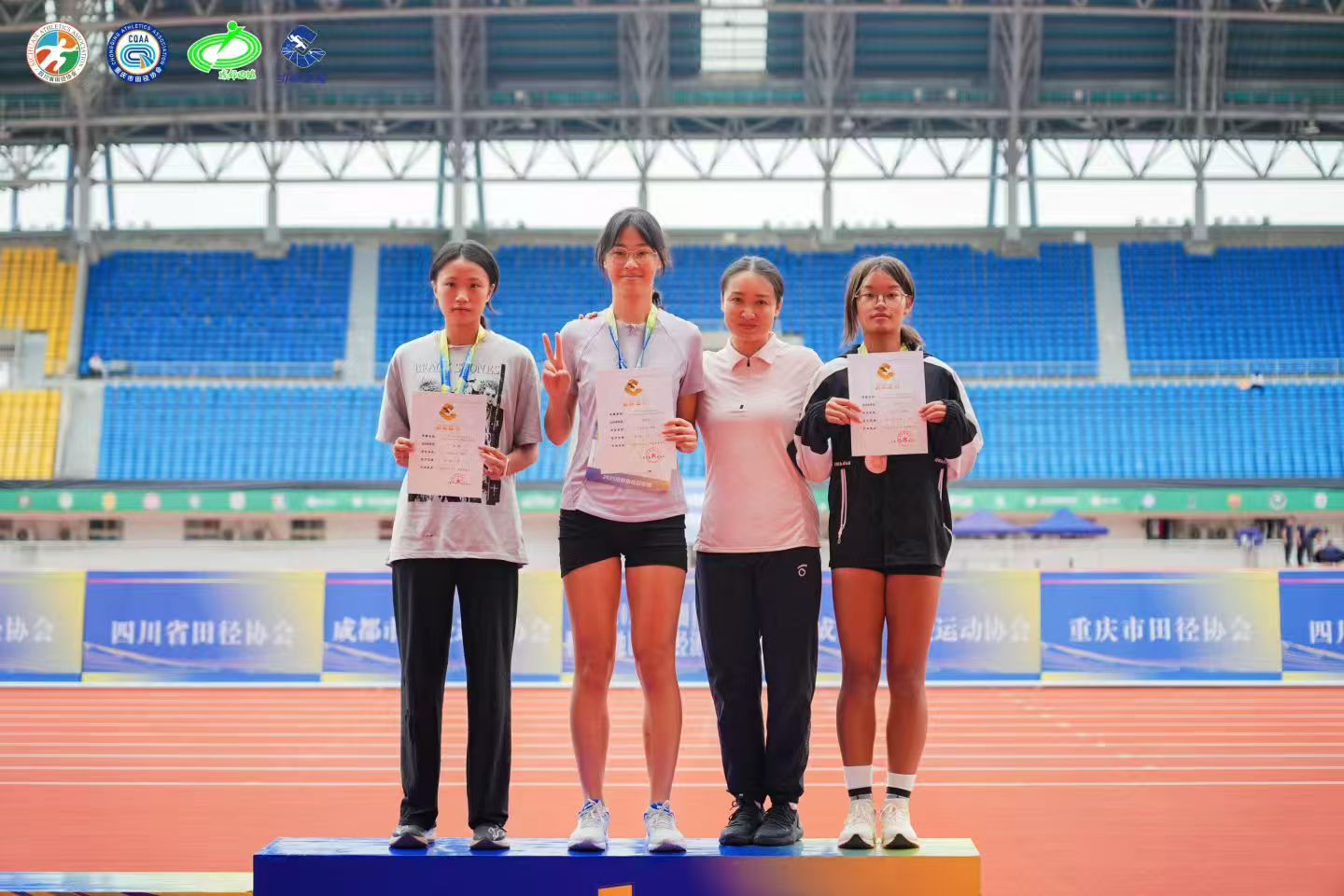10月4日-7日,2025年成都田径冠军赛暨成渝地区双城经济圈田径邀请赛在双流体育中心顺利进行,来自四川省、重庆市的67所重点田径学校的2373名队员参加了本次比赛。国庆中秋双节放假期间,我校6名田径队教师带领45名队员不辞辛苦劳累,积极备战训练。经过4天激烈角逐,我校田径队最终获得13个冠军,6个亚军,3个季军,45个前八名的好成绩。