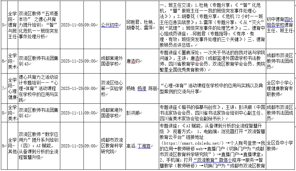 成都市双流区教育科学研究院全学段2025年11月学科研培活动安排