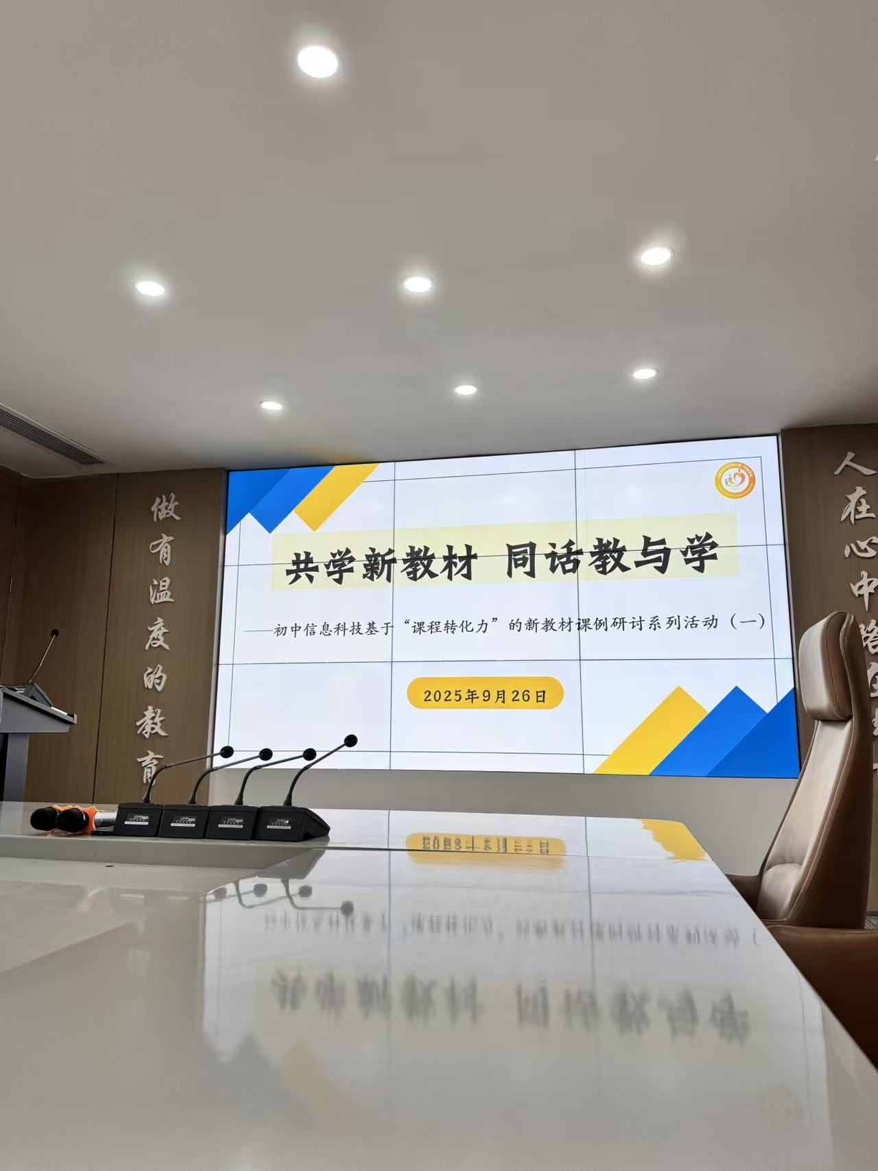 2025年9月26日,双流区初中信息科技基于“课程转化力”的新教材颗粒研讨系列活动(一)在怡心第一实验中学隆重举行,我校信息科技教师宋云霞、陈亮、房华、鲁巷参与本次区教研活动观摩学习。