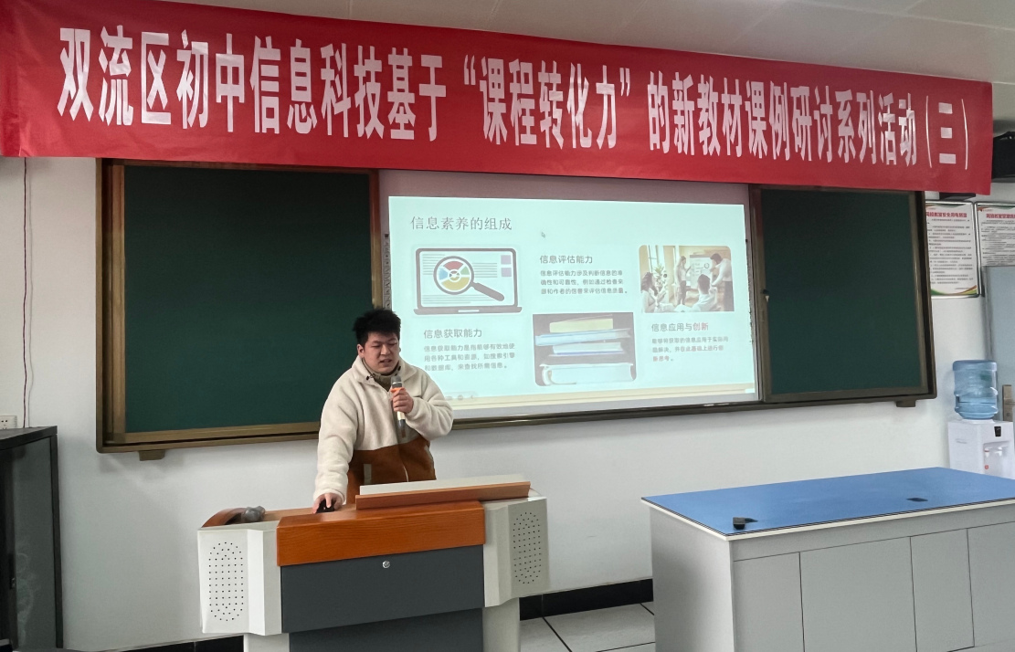 2025年11月21日,双流区信息科技学科教研活动在我校成功举行。活动于上午9时准时开始,全区信息科技教师齐聚立格实验学校。与会教师首先观摩了两节精彩的新教材课例展示。我校信息科技教师詹超在活动中上了一堂新教材课例展示课“科学合理使用网络”,课堂围绕如何正确认识网络的双面性,如何辨别网络信息的真伪,如何识别网络陷阱,如何提升信息素养等用文字、视频、漫画多种形式结合进行了生动的讲解。学生分小组积极探讨参与,课堂气氛热烈。展现了我校在信息技术与教育教学深度融合方面的实践成果。西航港康捷老师也献了一堂生动有趣的“网络安全风险”课。授课教师紧扣新版信息科技新教材核心素养,通过精心设计的教学环节,展示了如何在课堂中有效培养学生的数字化学习能力,为后续的研讨提供了丰富的实践案例。