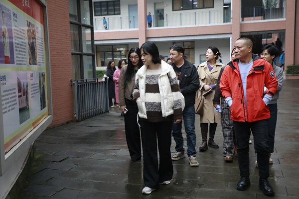 活动伊始,中学部执行校长龙清明、校党委副书记刘尧树、外事办主任李征和教科室主任付兵在校门口热情迎接重庆教研员团队,并合影留念。随后,在付兵主任的引导下,嘉宾们依次参观了太阳门、图书馆、月恒广场、蔬香园、生态实验室等特色场所,并与陪同领导深入交流学校在校园文化建设、课程架构与实践以及办学特色等方面的探索与成果。
